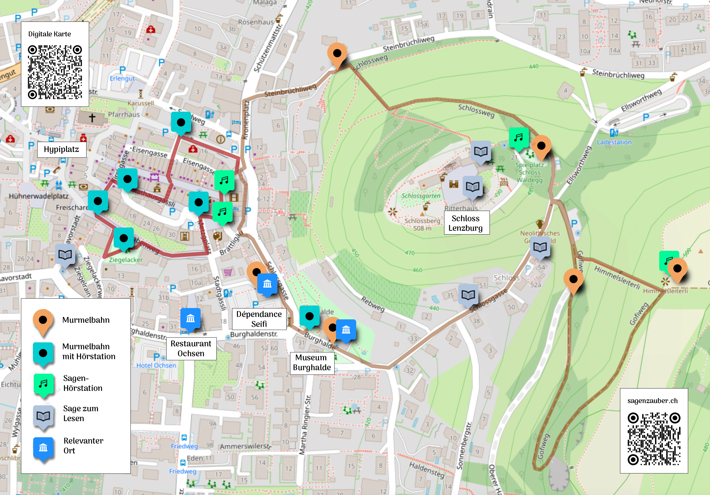 Die alten Spukgeschichten wurden dem 100-jährigen Buch «Aus einem alten Nest» von Nold Halder entnommen. In Kombination mit den vielen Märmelistationen rund um das Museum und den Schlossberg sind Spiel, Spass und Geschichte(n) für die ganze Familie garantiert. Damit die aus Holz gebauten Stationen längerer erhalten bleiben können, werden die Murmelbahnen über den Winter abgebaut, restauriert und eingelagert (November bis März). Die Lenzburger Murmeln sind im Museum während der Öffnungszeiten und ausserhalb im Hotel Restaurant Ochsen erhältlich.